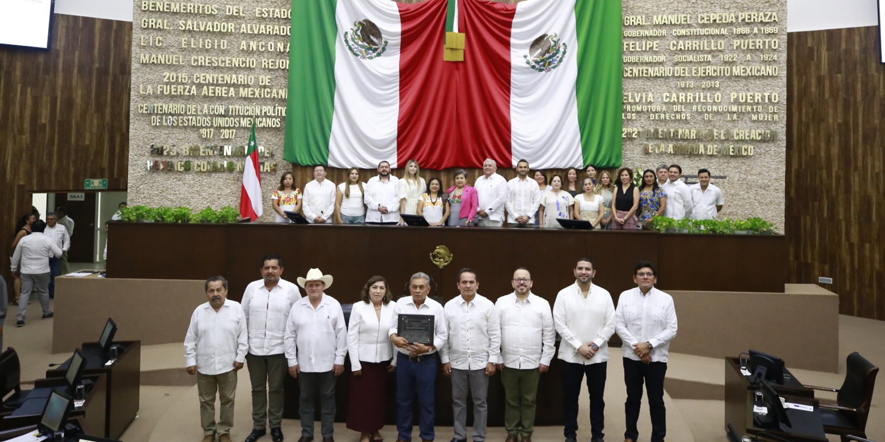 En Sesión Solemne celebrada en el recinto del Poder Legislativo, las y los diputados de la LXIV Legislatura del Congreso del Estado de Yucatán entregaron el Reconocimiento “Diputado Profesor Pánfilo Novelo Martín” al maestro José Luis Quintal Catzín, en honor a su trayectoria y aportaciones a la educación indígena y a la preservación de la lengua y cultura maya.
